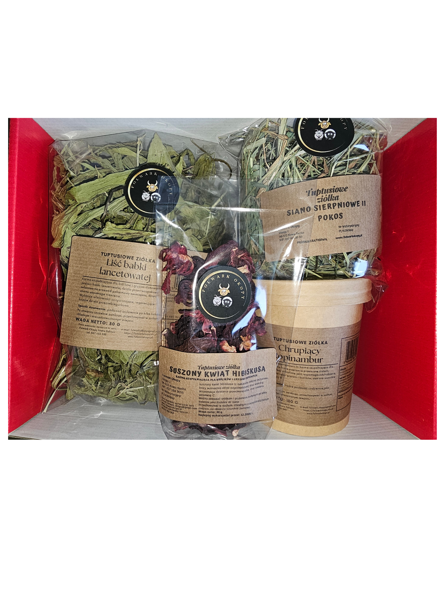Naturalny Box Prezentowy najlepiej podawać razem z dobrą bazą diety: siano i delikatne dodatki.
