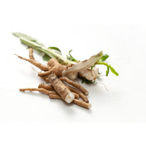 Korzeń cykorii jest bogaty w inulinę, prebiotyk wspomagający florę bakteryjną jelit i trawienie.