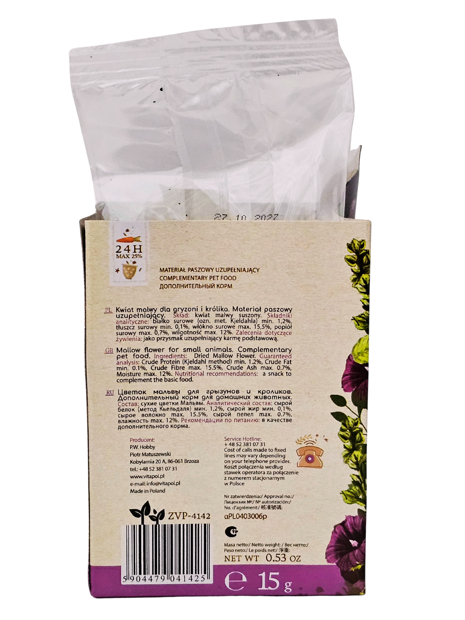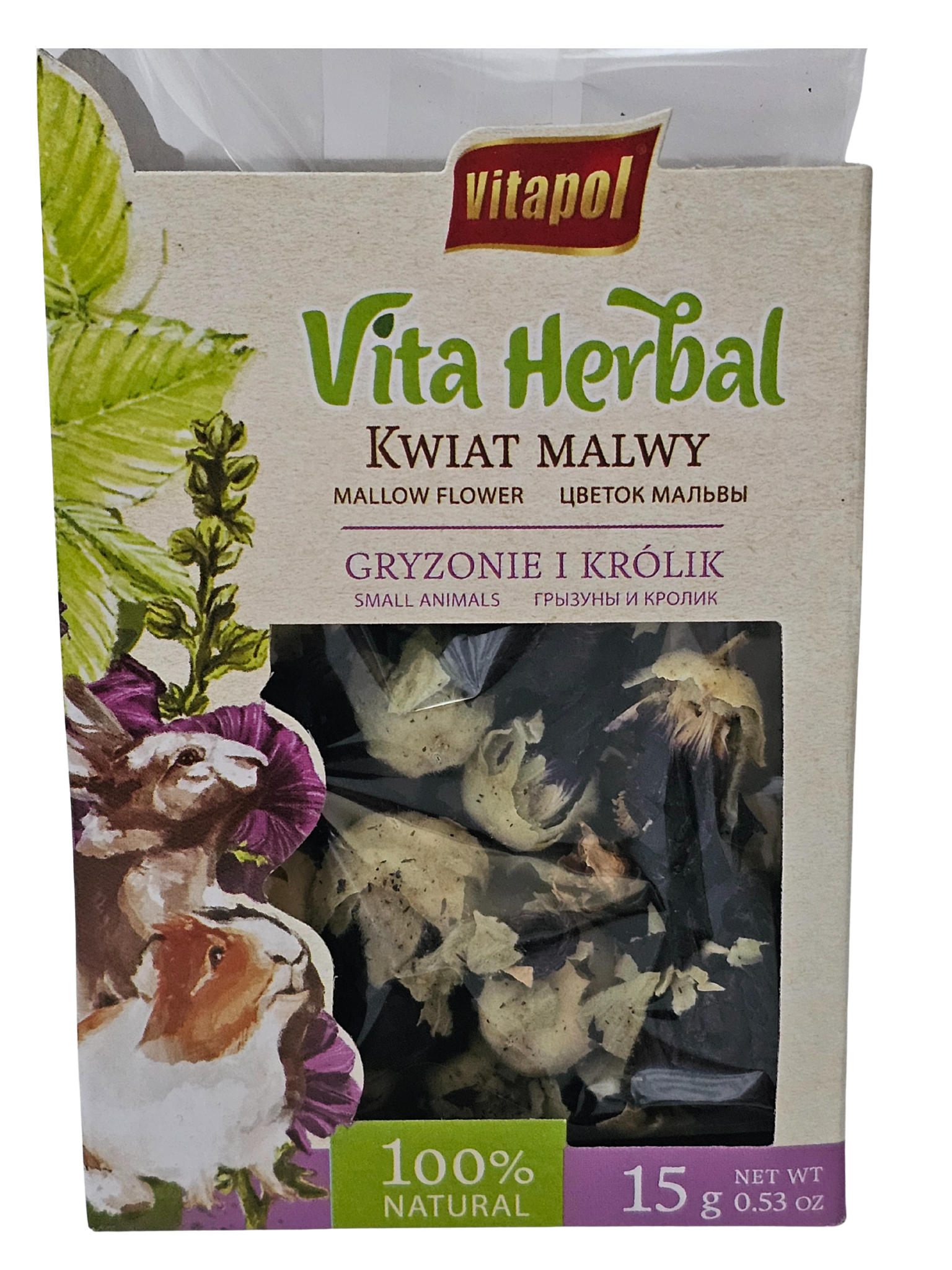 Kwiat malwy dla królika i gryzonia - Vita Herbal Vitapol 15g Delikatny , naturalny przysmak wspierający zdrowie układu pokarmowego