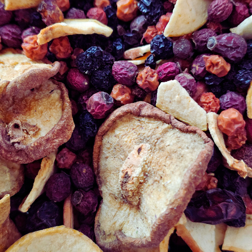 - Wyłącznie suszone owoce bez konserwantów i cukru.