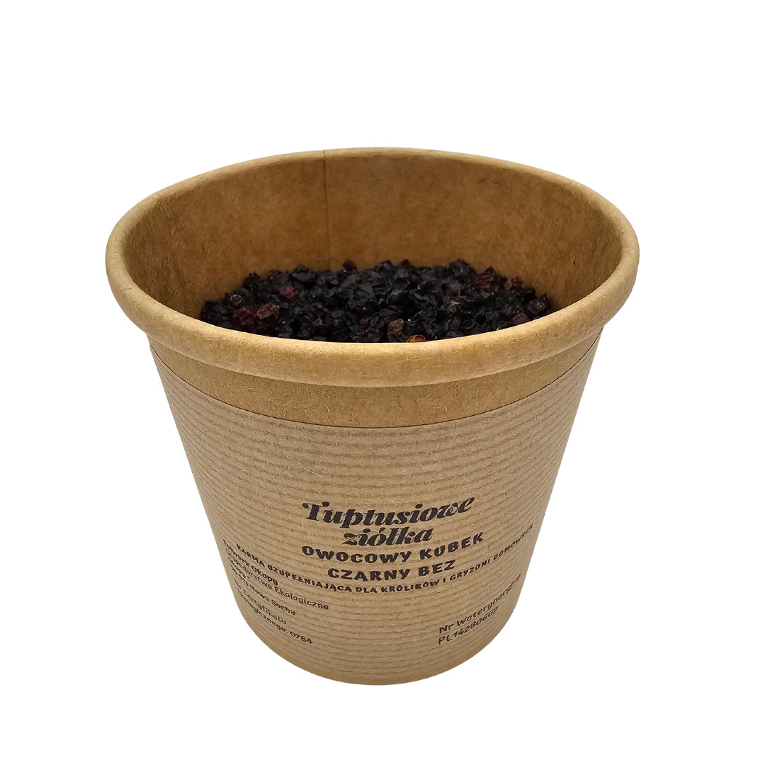 Owocowy kubek czarnego bzu to karma uzupełniająca dla gryzoni i królików domowych.