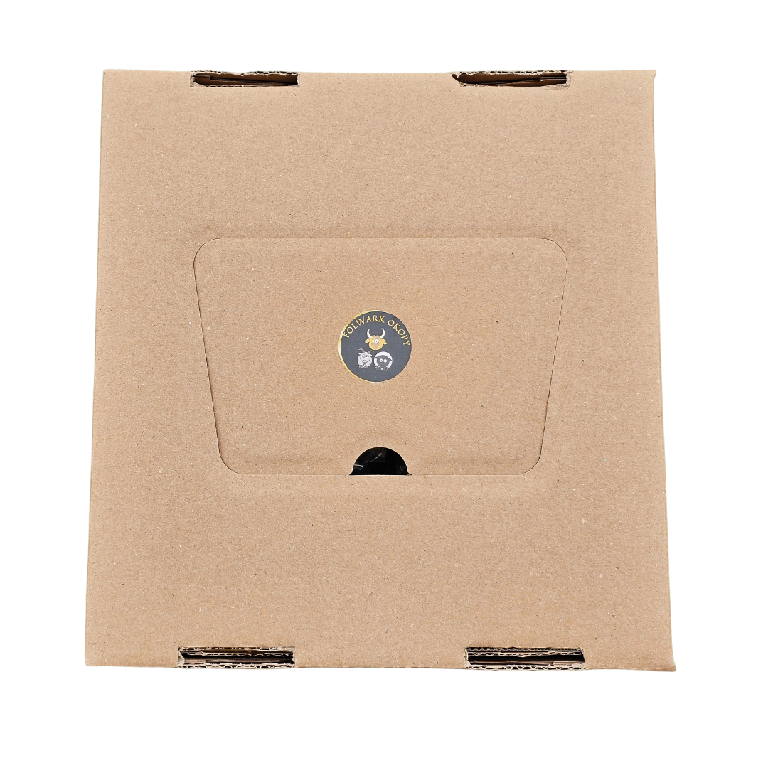 Kraftowe pudełko otwierane z góry pomieści aż 2 kg siana, co sprawia, że jest bardzo pojemne.