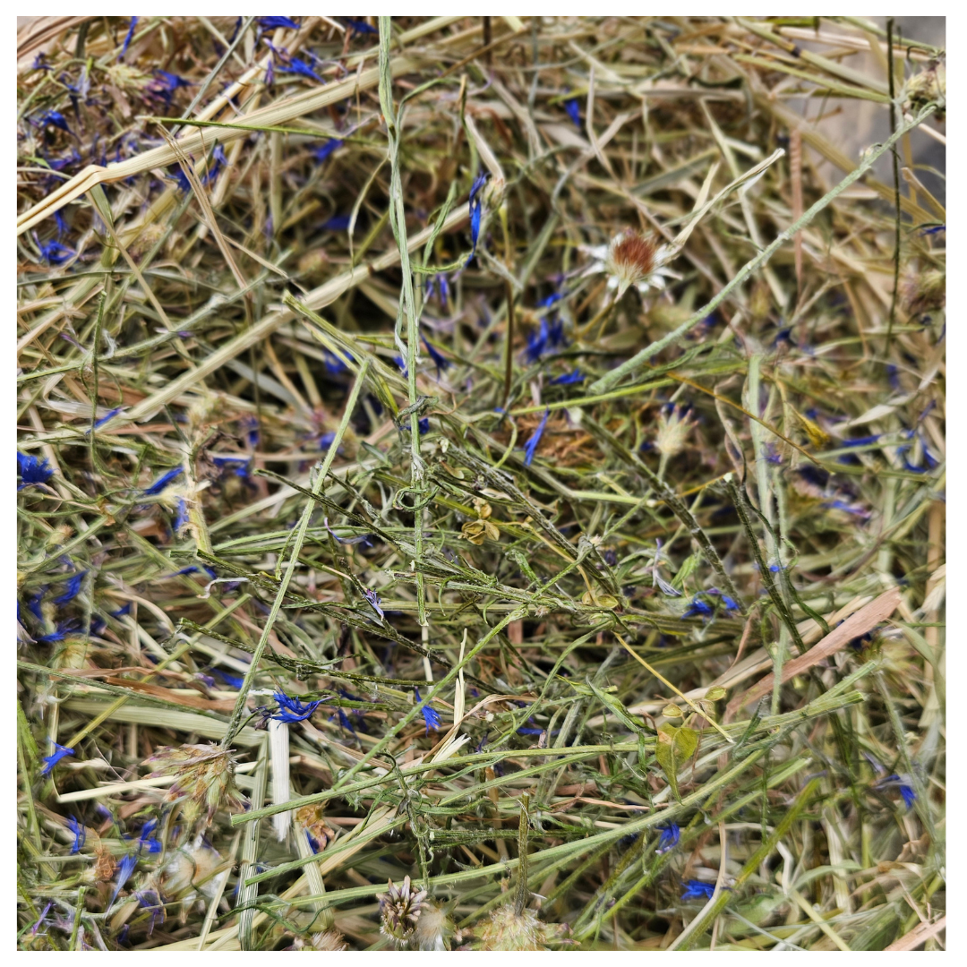 Skład: siano majowe z pierwszego pokosu, łąkowe, odpylone, kwiat chabra bławatka