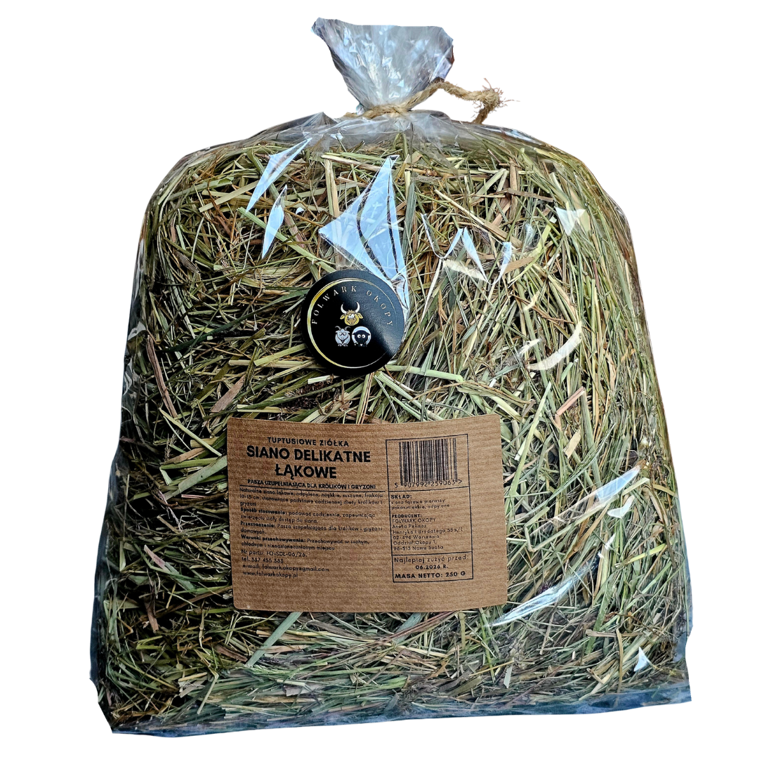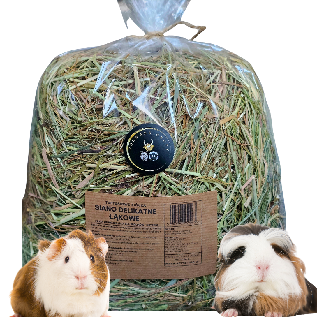 Siano delikatne Folwark Okopy to cienkie, miękkie źdźbła o długości 10 -15 cm, z pierwszego pokosu, starannie odpylone i przygotowane z myślą o zwierzętach, które potrzebują łatwiejszego w pobieraniu włókna.