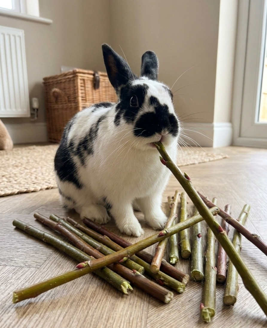 świeże gałązki wierzby – naturalna potrzeba każdego królika
